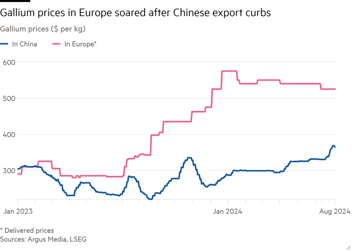 That has sparked a near-doubling of gallium costs in Europe and constrained entry to a key mineral for chips with civil and navy functions.