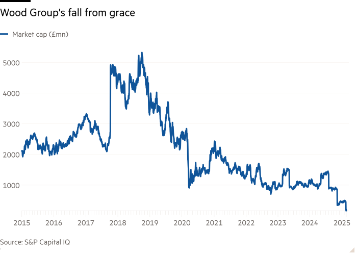 Wood Group, based in Aberdeen, built its reputation by winning engineering contracts in the oil and gas sector. At its height, the company’s market capitalization exceeded £5.3 billion. Today, things look very different. Wood Group has seen its market value plunge to just £167 million and is burdened with a staggering net debt estimated to average around $1.1 billion this year. The company is in the red and is approaching the expiration of $1.4 billion in debt facilities next October. Recently, Wood faced embarrassment when its chief financial officer resigned after admitting to misrepresenting his qualifications.