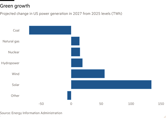 This growth trajectory illustrates a consistent shift in the energy mix, with renewables increasing their share of US power generation from 11% in 2020 to an expected 18% last year.
